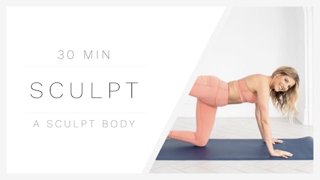 30 minute full body sculpt with Alessia from A Sculpt Body. Equipment includes light hand weights.